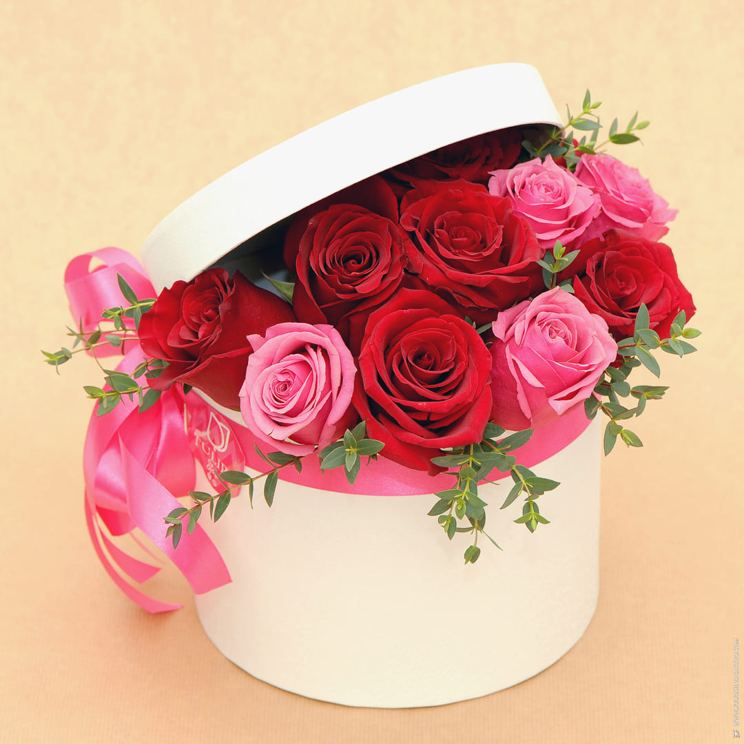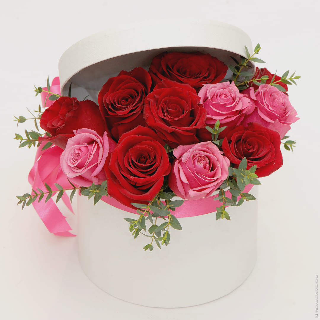 Chapeleira com rosas vermelhas e cor-de-rosa. Ideal para oferecer no Dia dos Namorados.