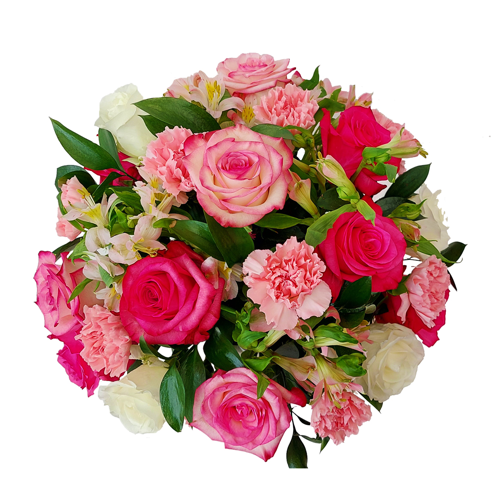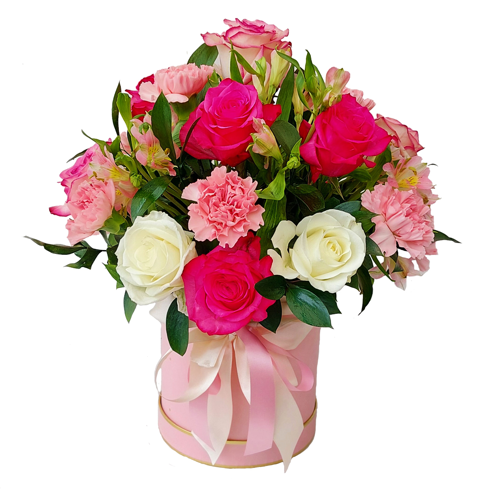 Chapeleira com flores em tons rosa.