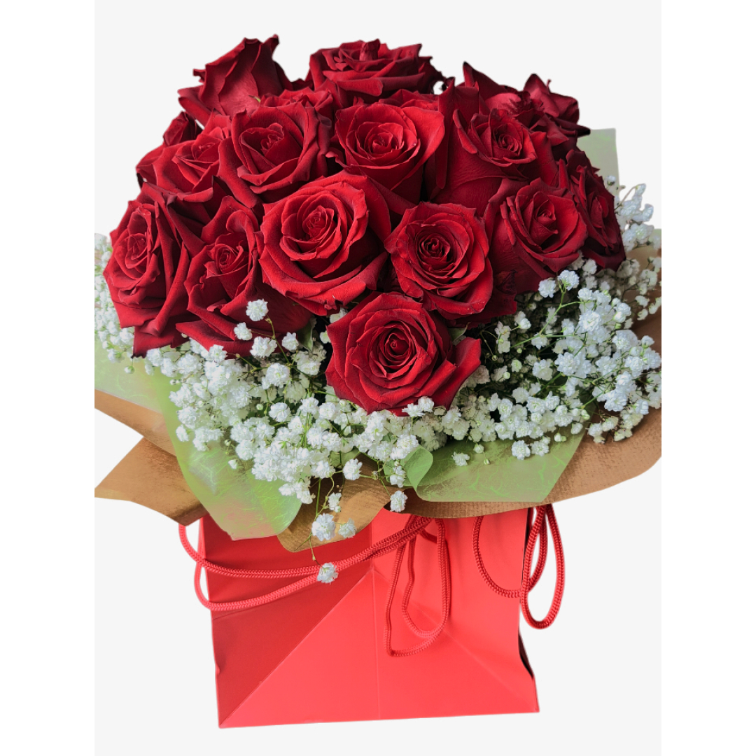 Chapeleira composta com rosas vermelhas. Produto lançado especialmente para o Dia dos Namorados, em sacos reutilizáveis e elegantes.