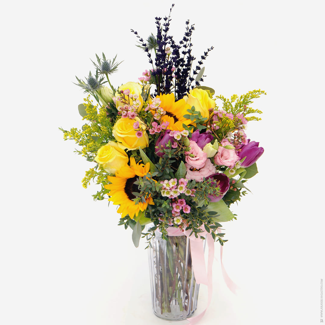 Bouquet de flores em tons de amarelo e cor de rosa. Ideal para oferecer no dia dos namorados.