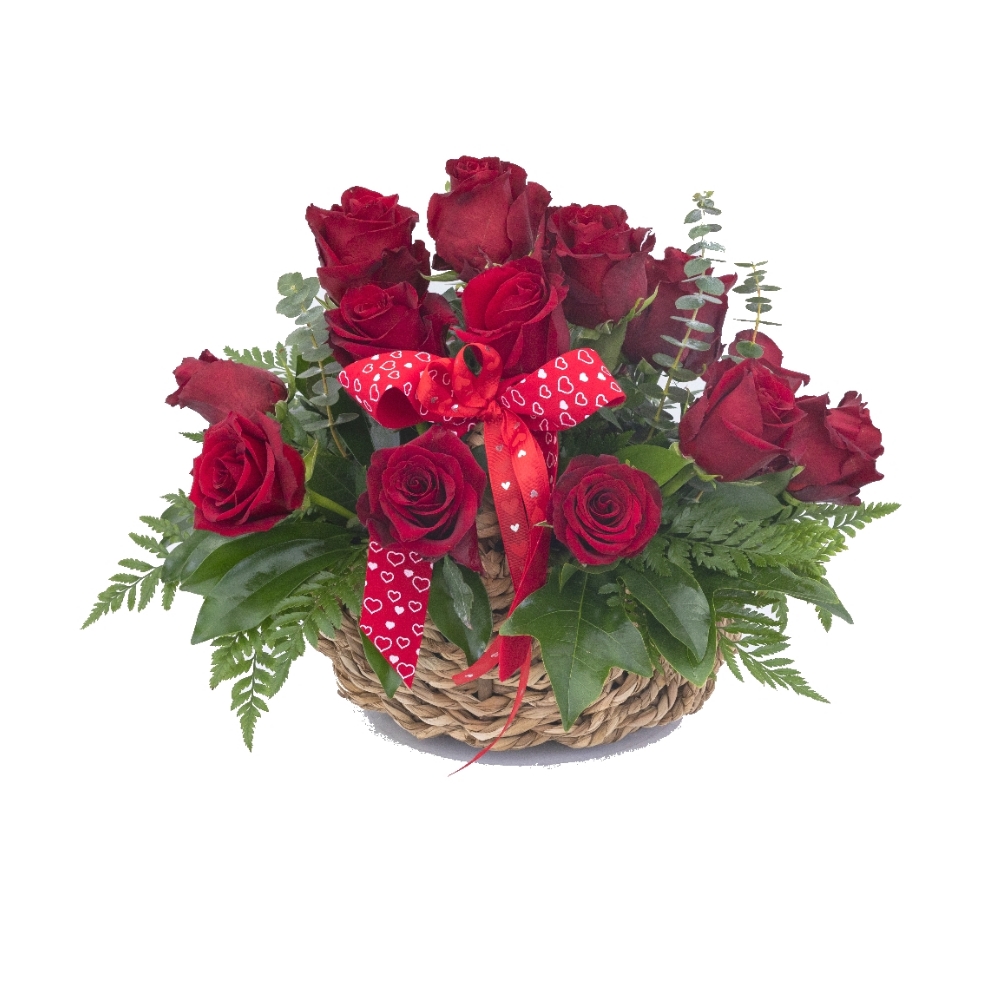 Cesto com Rosas Vermelhas.